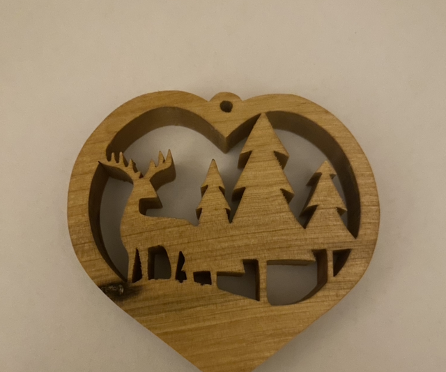 Boule de Noël coeur réalisé en bouleau
