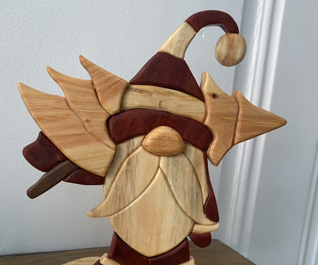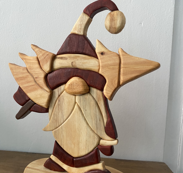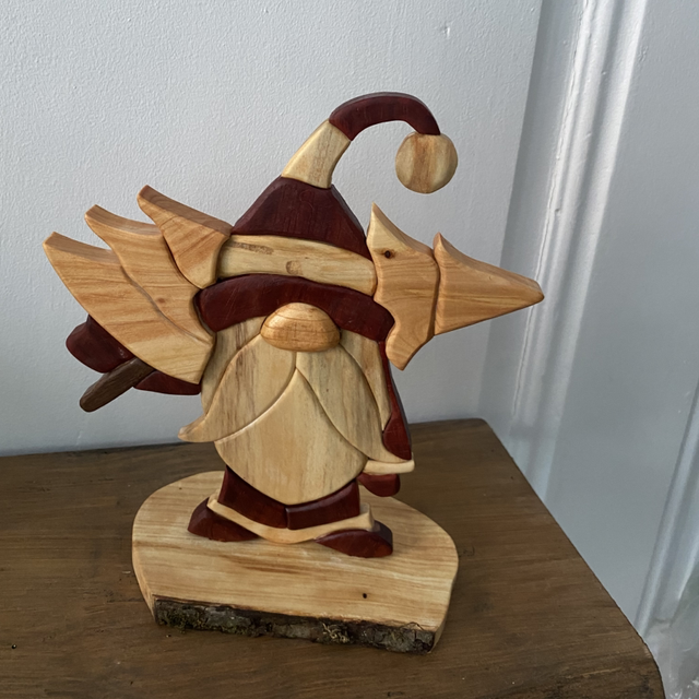 Décoration à poser en Intarsia, réalisée avec plusieurs essences de bois :